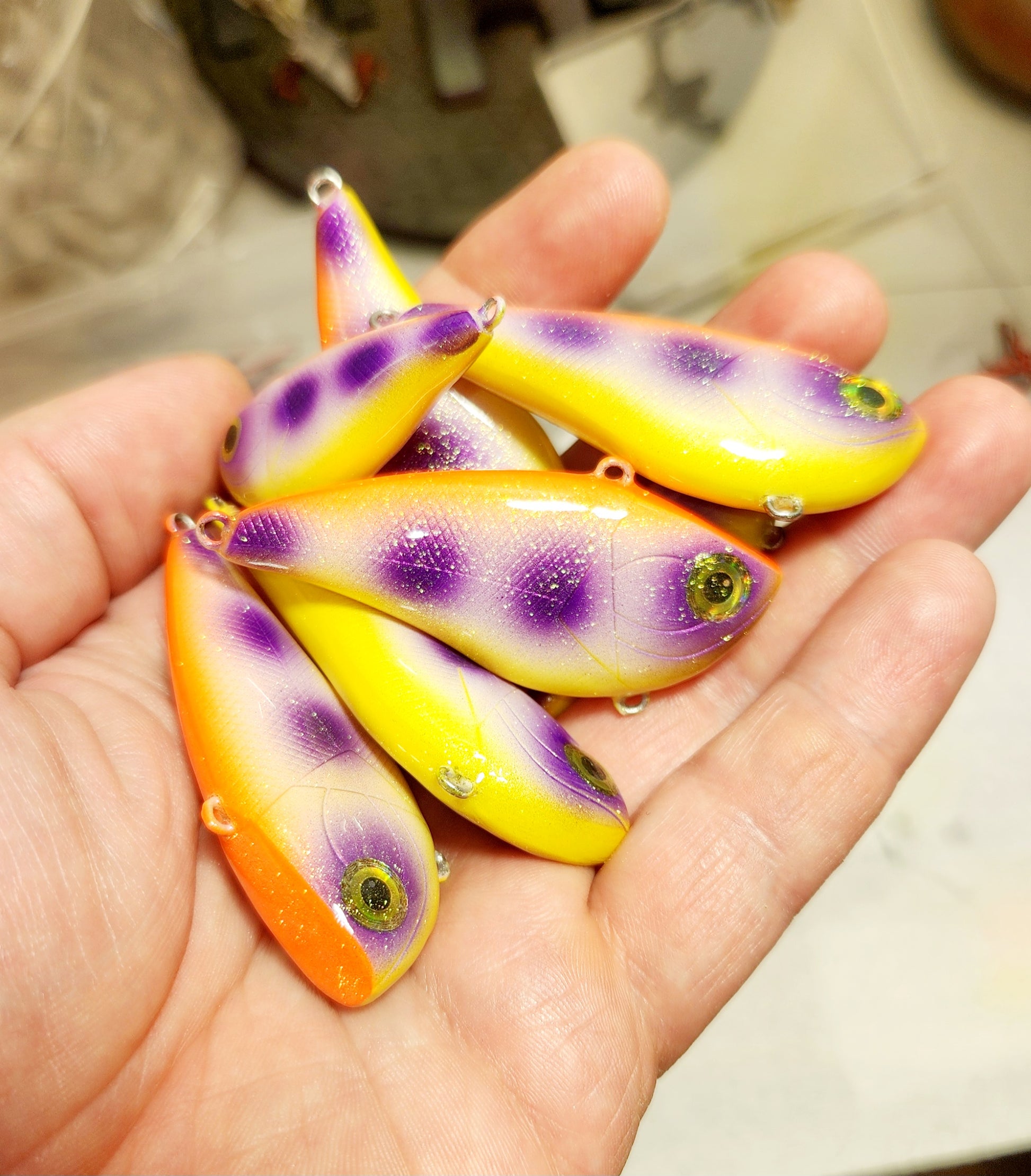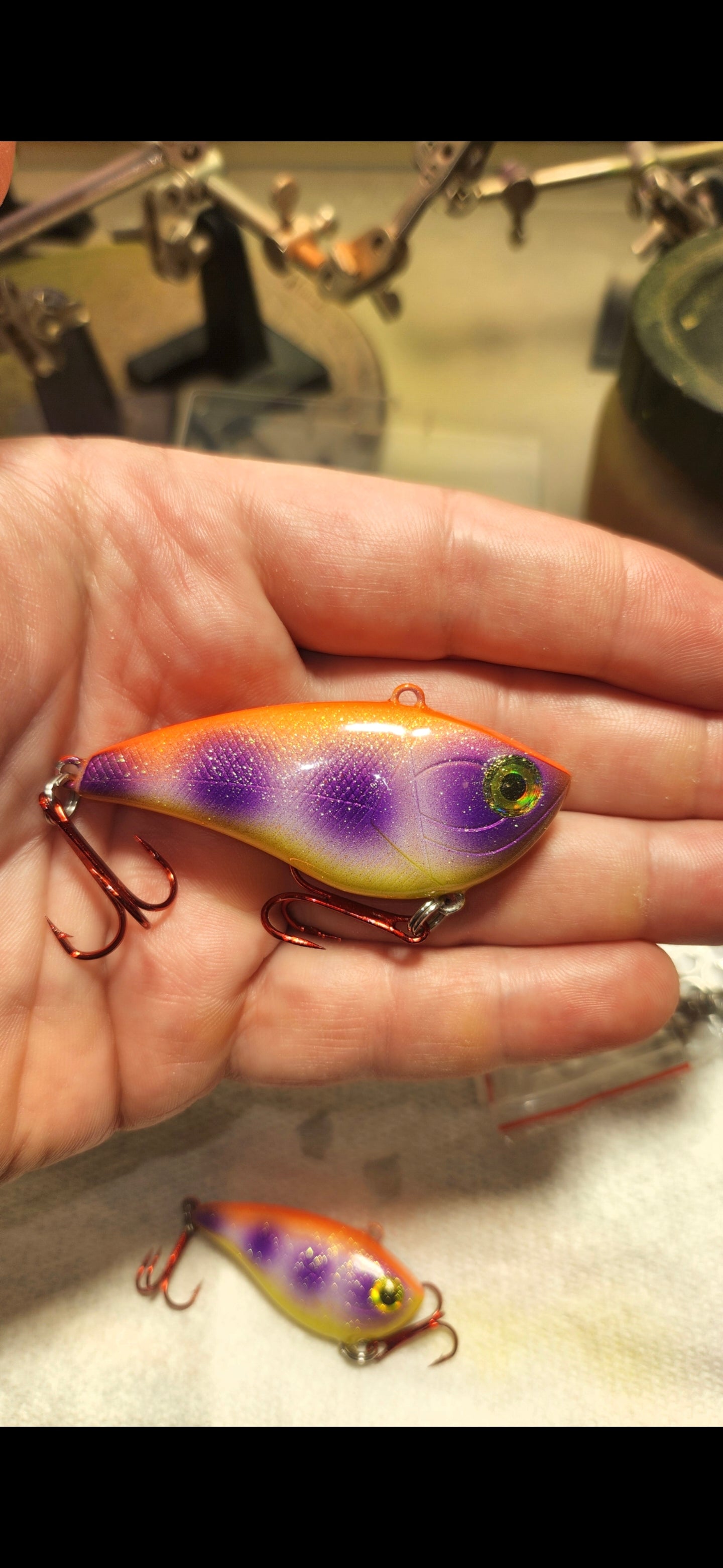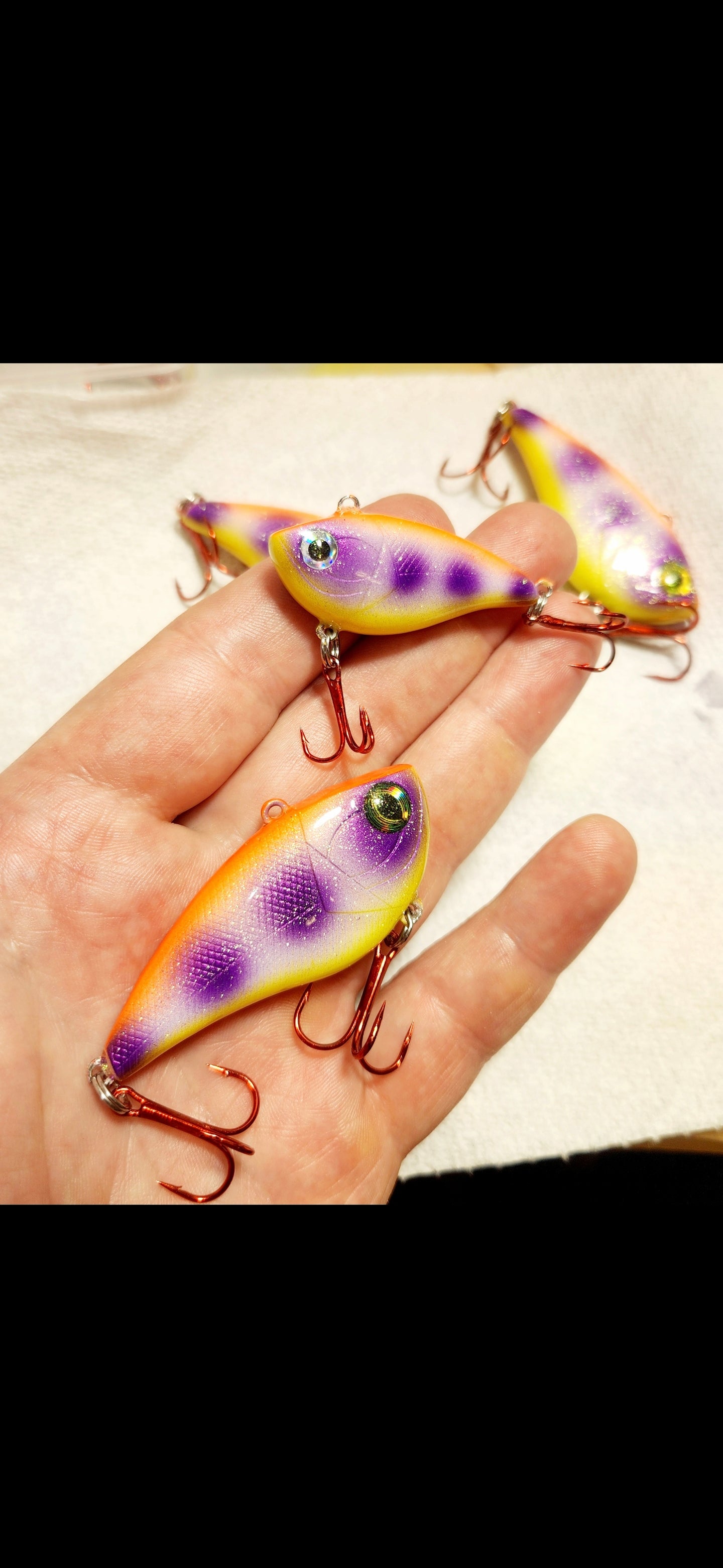 looking to for something different? we've got you! Exile Bait & Tackle Co. is excited to offer custom air brushed lipless crankbaits in a variety of sizes from 32mm up to 80mm, and in many patterns to choose from. As well custom orders painted to suite your specific needs, just reach out to us and we will hook you up! All our lures are put together using quality components and craftsmanship to ensures our baits look great and hold up to catch after catch!